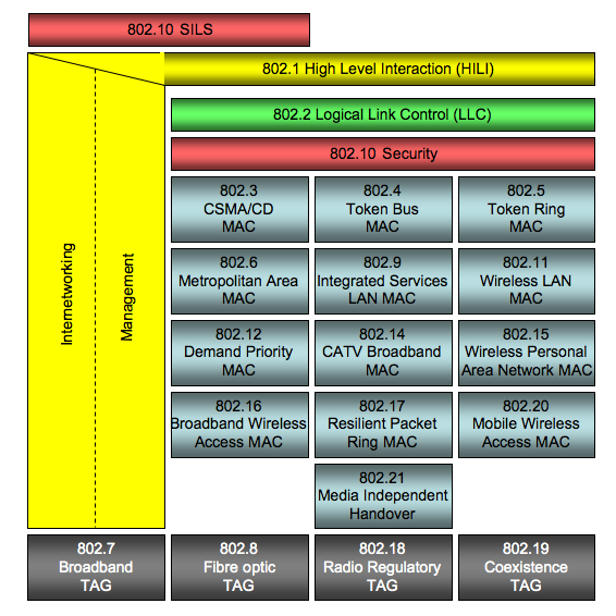| 802.10 | Standard for Interoperable LAN Security (SILS) Working Group | Disbanded |